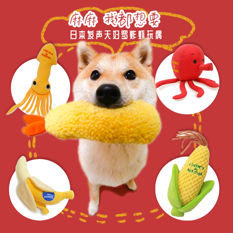 日本宠物发声天妇罗炸虾玩偶 网红柴犬幼犬耐咬毛绒响纸狗狗玩具