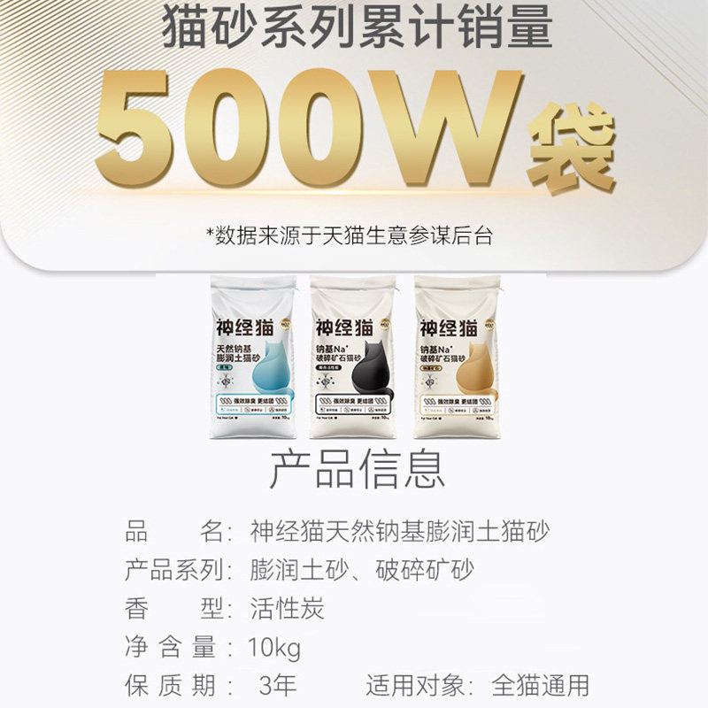 神经猫活性炭膨润土猫砂10kg低尘20斤混合猫砂瞬吸除臭强结团