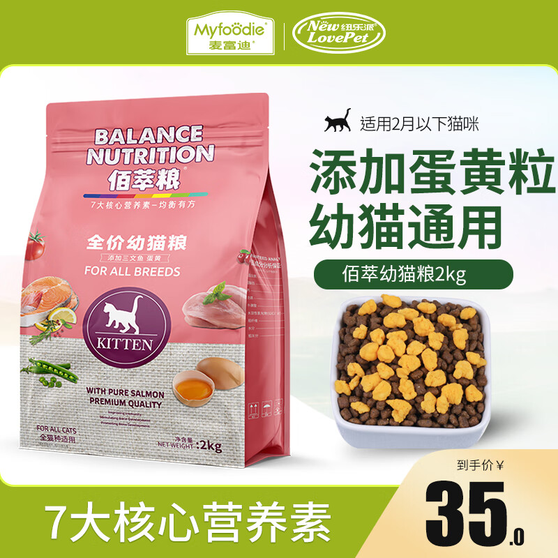 麦富迪佰萃猫粮 蓝猫美短英短布偶通用型天然粮 (三文鱼蛋黄)幼猫粮2kg