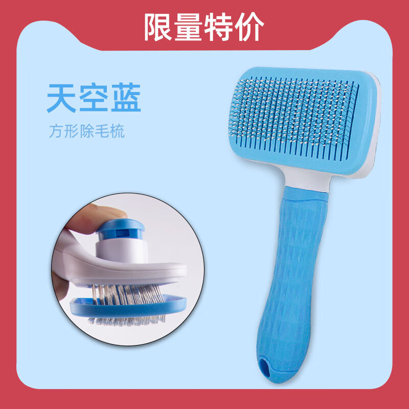 宠爱力狗狗梳子狗毛清理器猫咪除毛梳泰迪去浮毛比熊针梳开结刷宠物用品 蓝色【一键除毛 猫犬通用】