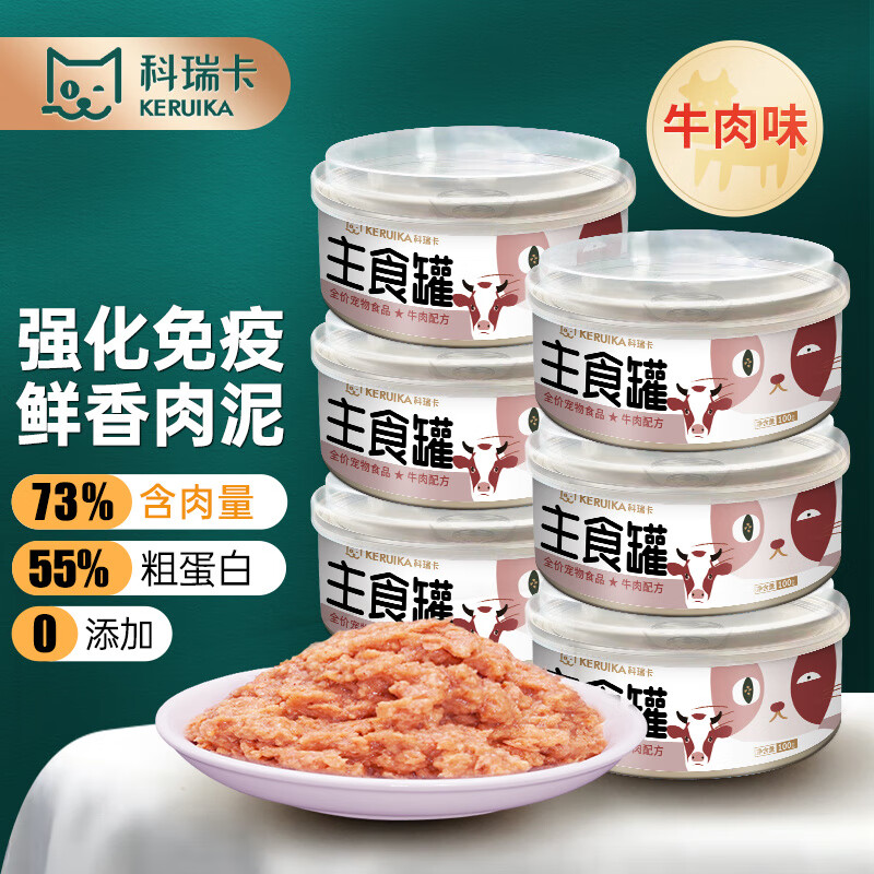 科瑞卡 幼猫咪主食罐头鸡肉德国牛肉无谷猫零食湿粮 牛肉味 100g×6罐