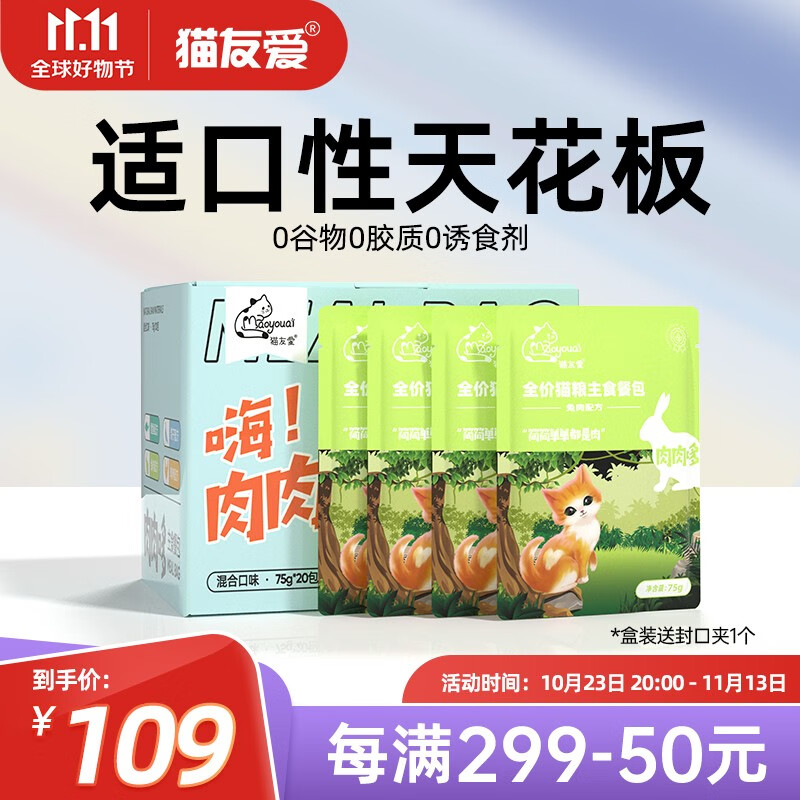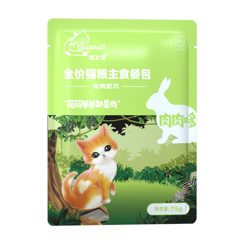 猫友爱全价猫咪补水猫湿粮大肉包鸽子鸡肉兔肉主食罐头75克X20包 兔肉味(共75g×20包)