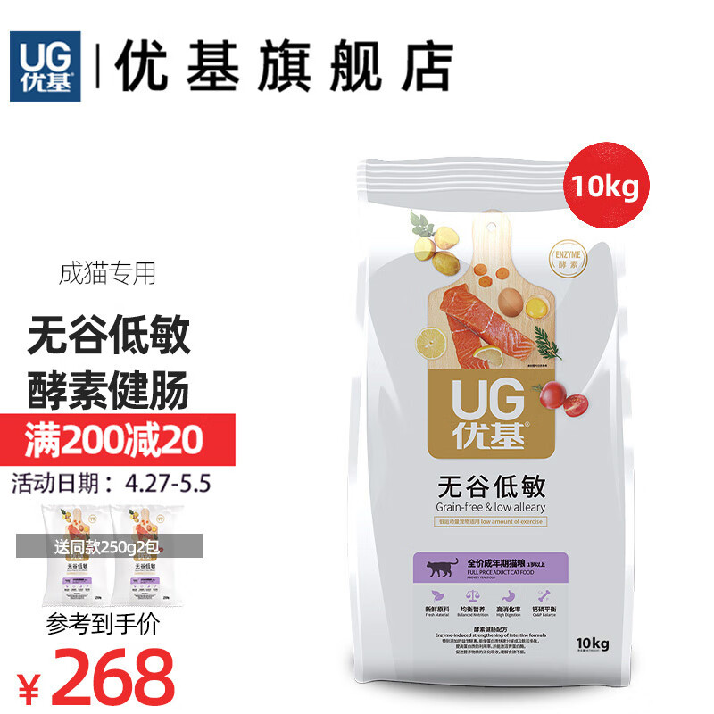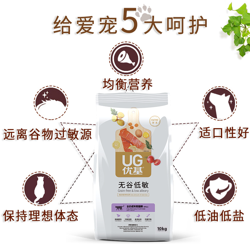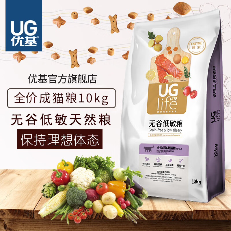 优基(YJ)猫粮成猫无谷低敏挑嘴成猫粮 美毛低盐英短加菲鱼肉味猫咪鲜肉粮 成猫粮10kg