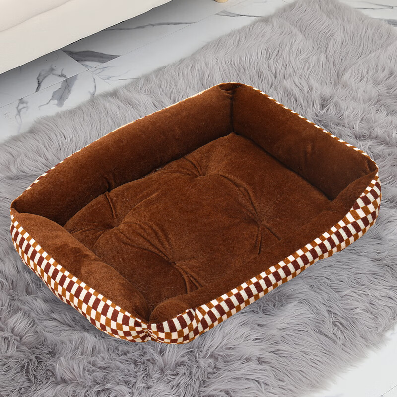 狗窝四季通用狗狗垫子泰迪柯基小型大型犬宠物用品床猫窝冬天保暖 咖啡格子 90*70CM(70斤内)