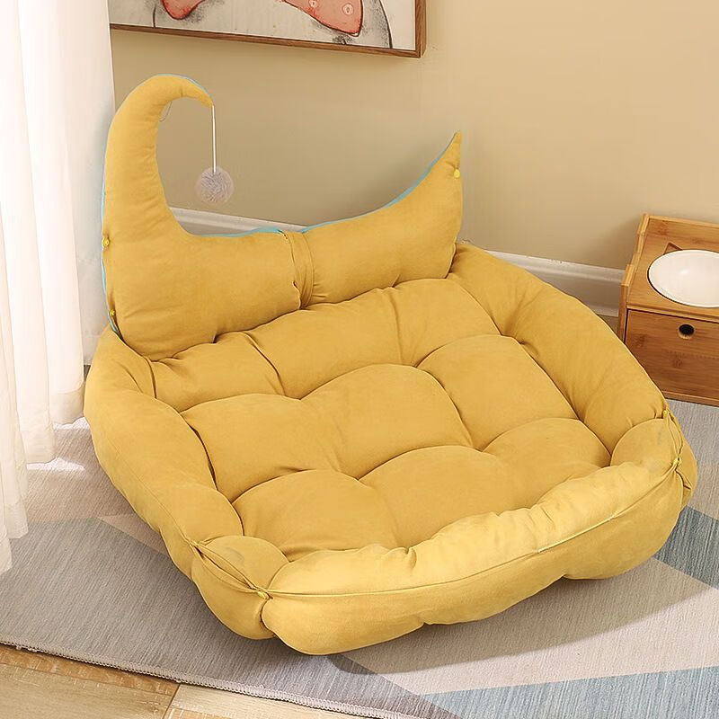 ABDT狗窝夏天四季通用小型犬泰迪窝狗床垫子网红猫窝沙发宠物狗狗用品 柠檬黄 小号【8斤内宠物】四季通用款