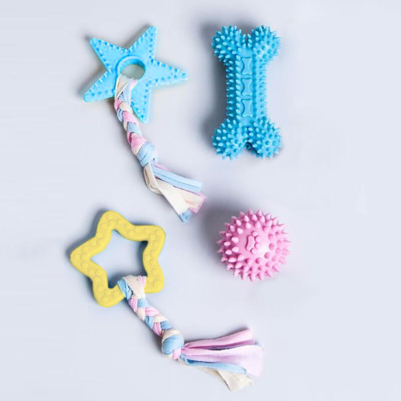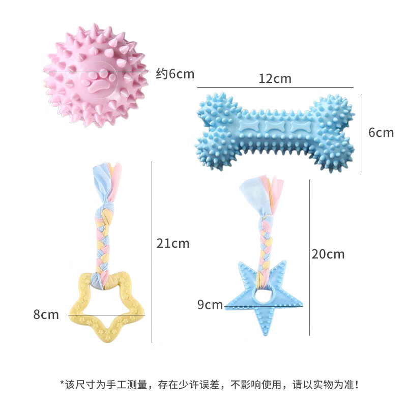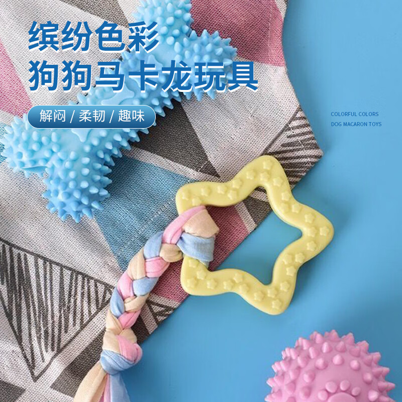 HOUYA 狗玩具猫耐咬 马卡龙4件套 磨牙棒狗咬胶小型犬幼犬球柯基橡胶解闷宠物用品