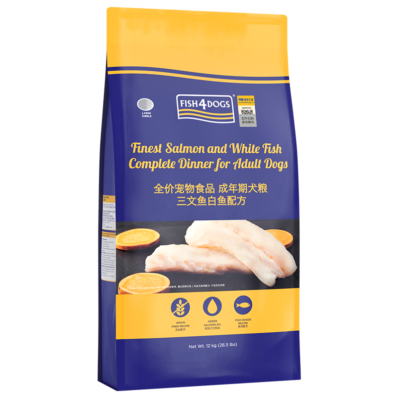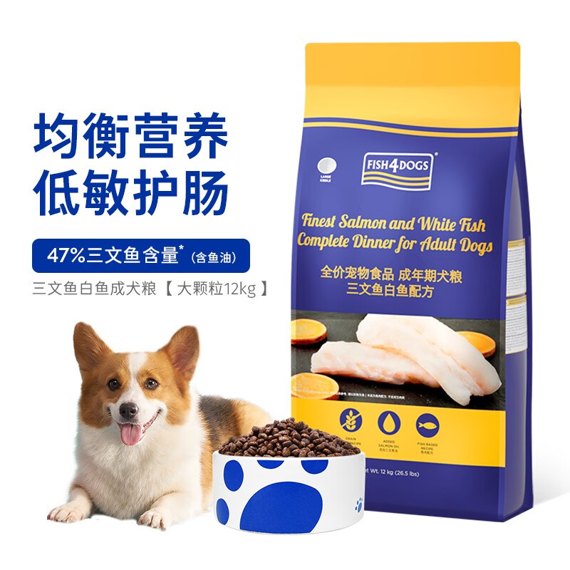 海洋之星三文鱼白鱼成犬狗粮无谷宠物犬粮柯基拉布拉多狗干粮 中大型成犬大颗粒12kg