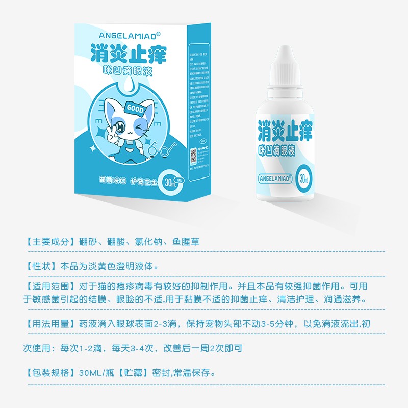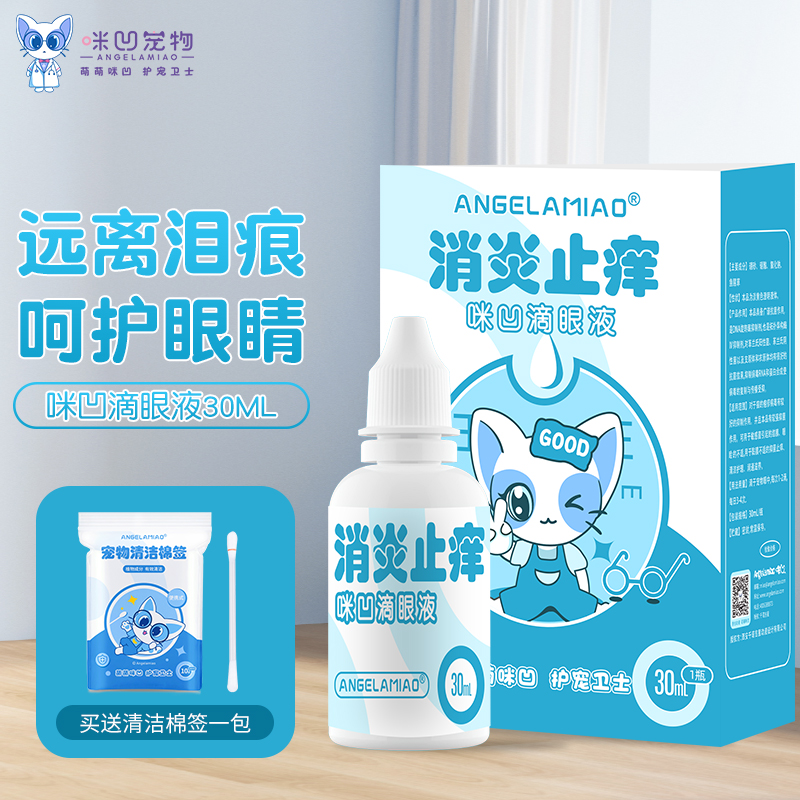 Angelamiao咪凹宠物滴眼液 猫咪狗狗眼药水消炎结膜炎角膜炎清洁眼屎泪痕使用30ml