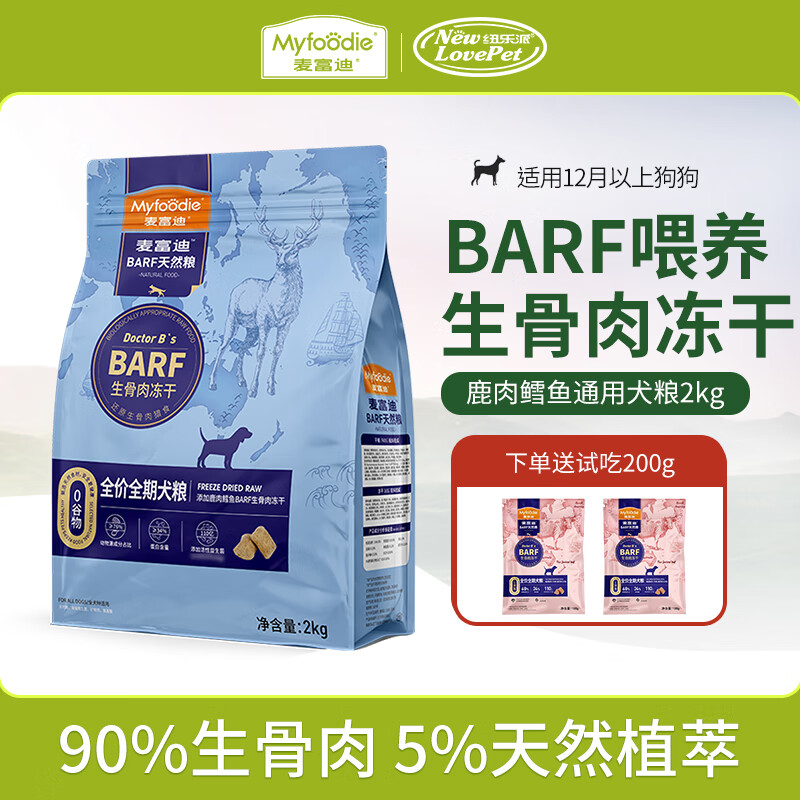麦富迪(MYFOODIE)麦富迪狗粮 barf生骨肉冻干双拼通用型犬粮 鹿肉鳕鱼2kg