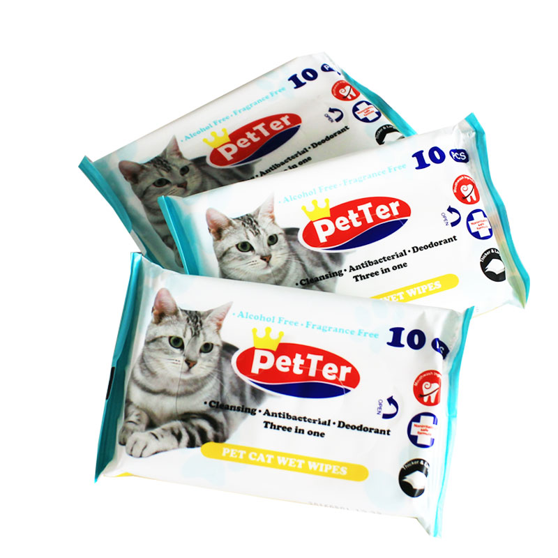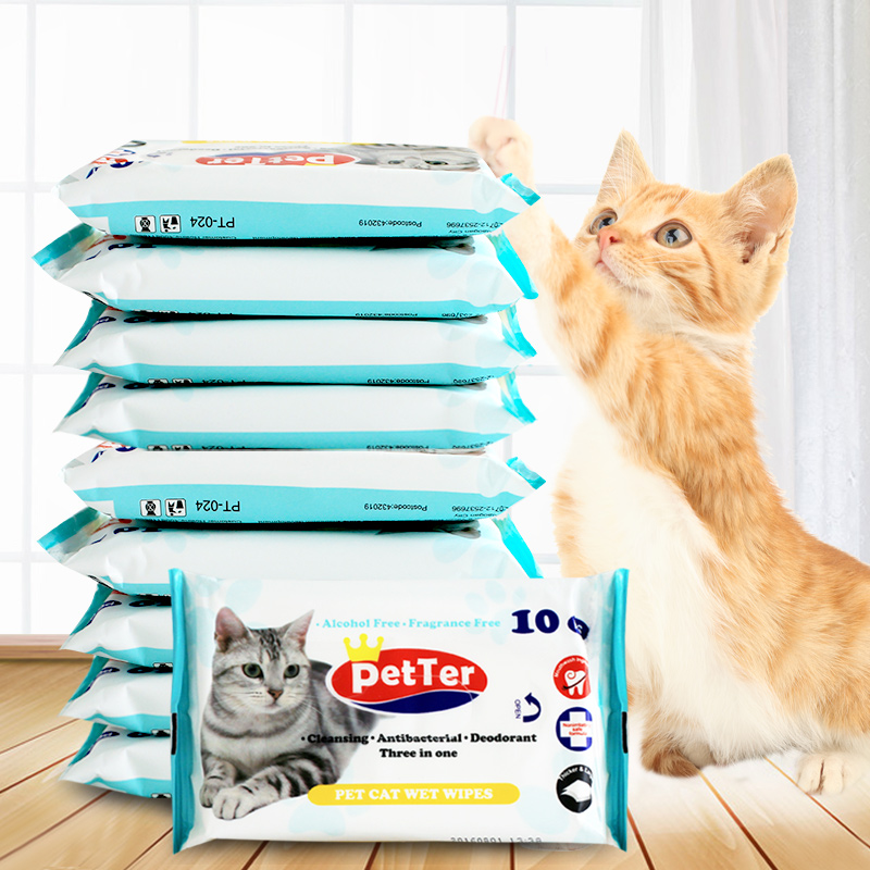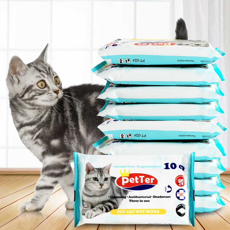 PetTer宠物湿巾猫咪沐浴去味擦泪痕湿巾除味清洁便携抽纸猫咪专用纸巾10片*10包