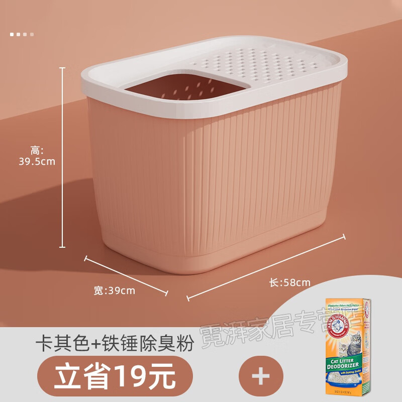 华元宠具(hoopet)猫砂盆全封闭顶入式大号桶特大猫厕所防外溅砂猫咪用品猫沙盆子 【款】卡其色 铁锤除臭粉