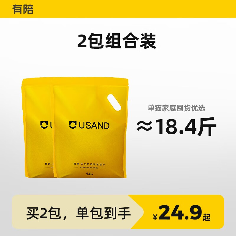 有陪猫塔自动猫砂盆专用天然矿石无尘膨润土猫砂原味除臭4.6kg 2袋【单猫可用1个月】