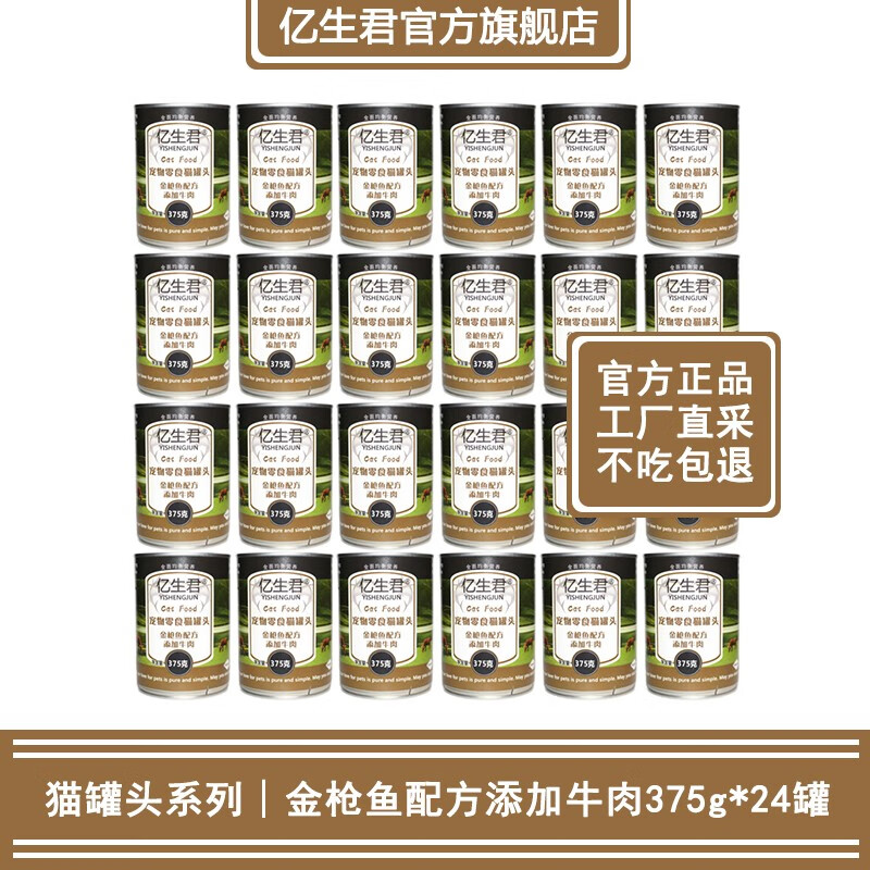 亿生君猫罐头 金枪鱼红肉鸡肉牛肉味湿粮375g/罐 全猫通用 金枪鱼牛肉味整箱375g*24罐