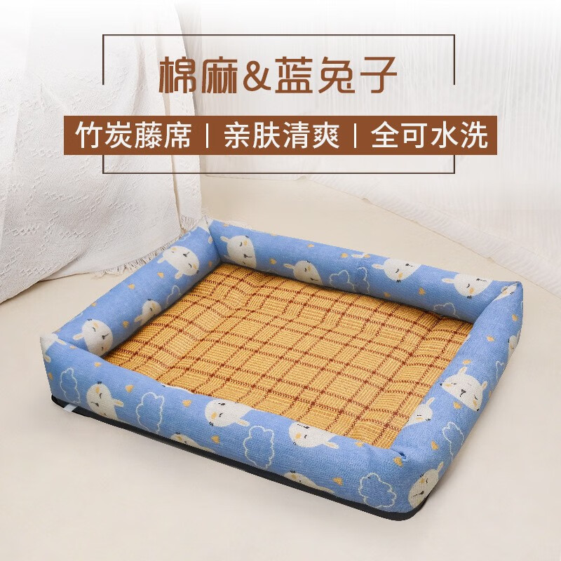 灯火如星猫狗窝夏季宠物凉席窝凉垫冰垫草席夏天狗垫子狗狗降温大号猫咪 蓝兔子 【S码40*30CM】 建议5斤