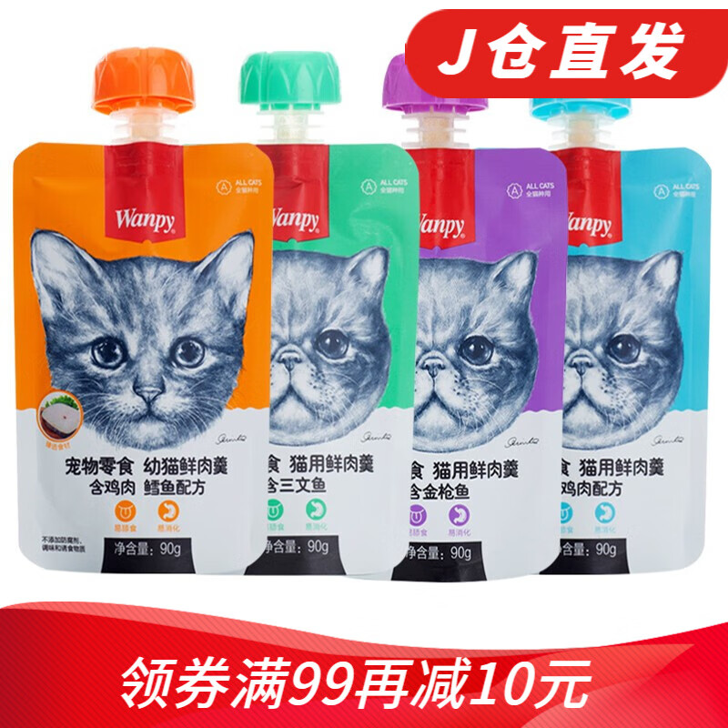 Wanpy顽皮鲜肉羹猫零食猫咪鲜封包猫湿粮幼猫成猫全期猫通用 四种口味各一包 1份