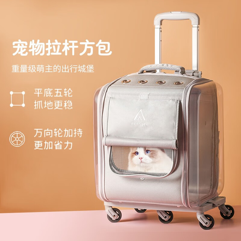 辛姆拉杆箱猫包猫咪外出户外透气便携透明狗宠物双肩背包中小型大容量 方包灰色【18斤猫12斤狗】图二款