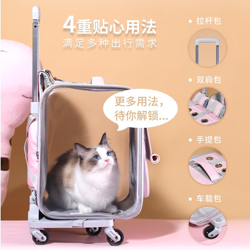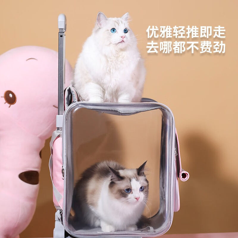 派可为 猫包宠物外出便携包太空舱猫咪双肩背包书包小型犬旅行箱(带USB空气扇)樱花粉