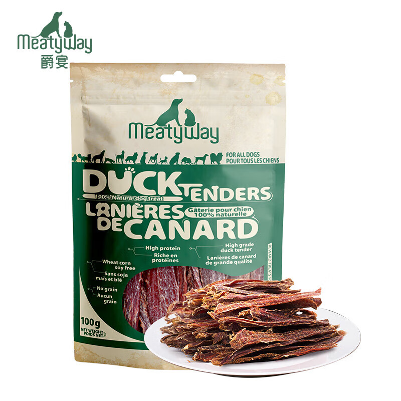 Meatyway 爵宴狗零食宠物狗狗零食训犬磨牙棒鸭胸肉干 纯粹鸭胸肉100g*8