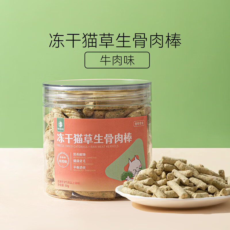 神经猫(shenjingmao)猫咪冻干生骨肉猫草冻干鸡肉零食幼成猫肉饼宠物猫食品 猫草棒-牛肉味