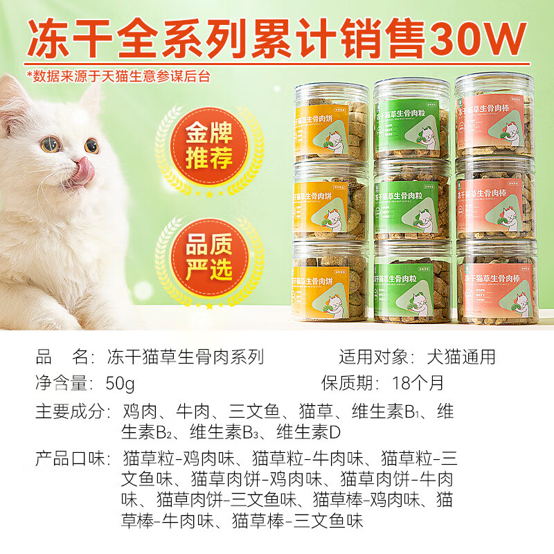 俘获猫草粒猫咪零食猫草片颗粒冻干懒人即食饼干化毛球猫薄荷用品
