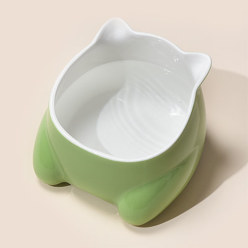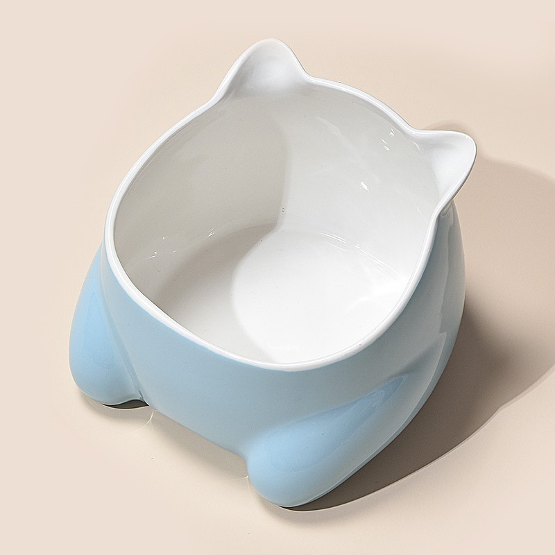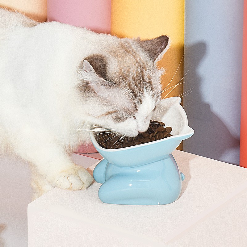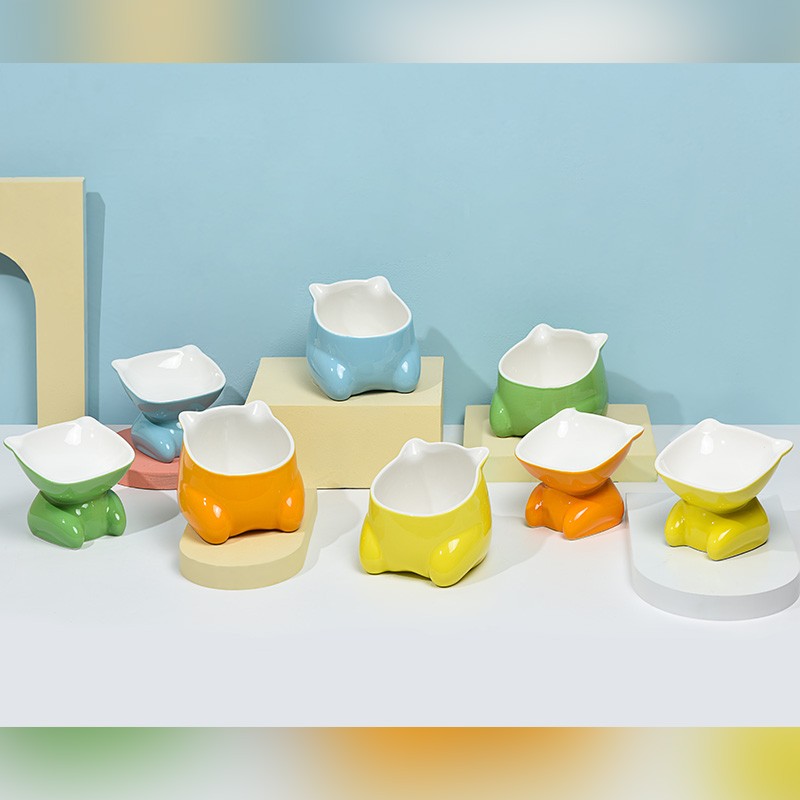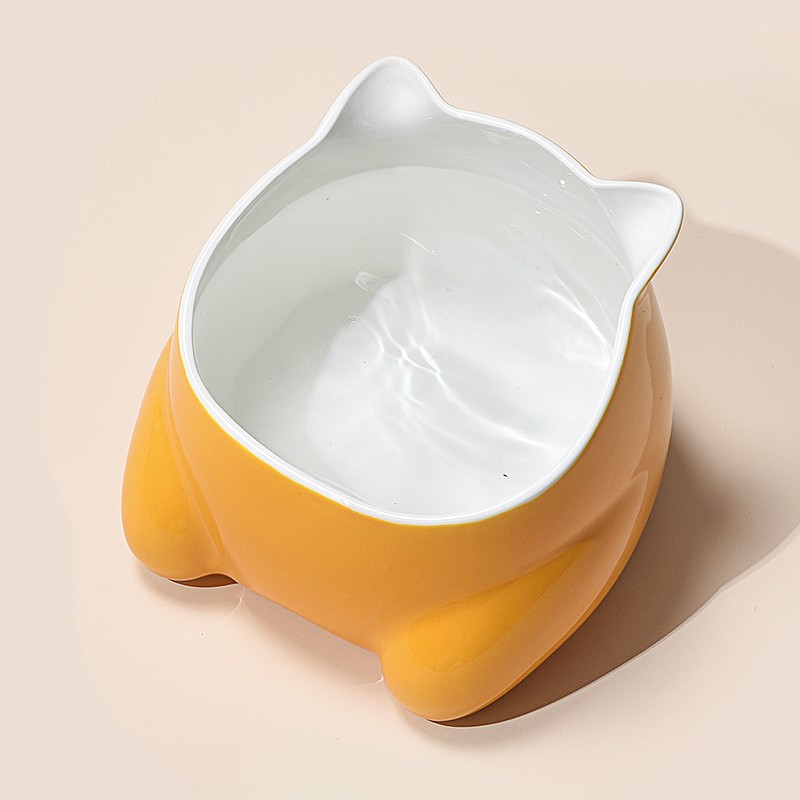 伴笛猫碗陶瓷猫粮碗高脚斜口碗护颈防打翻水碗猫食盆猫食碗猫咪用品 黄色【深碗】