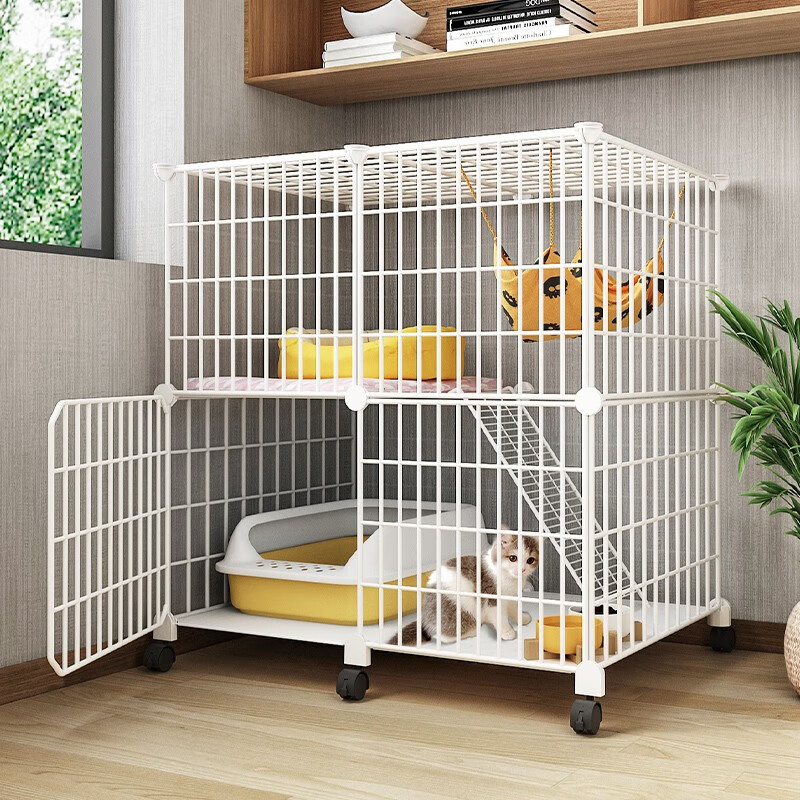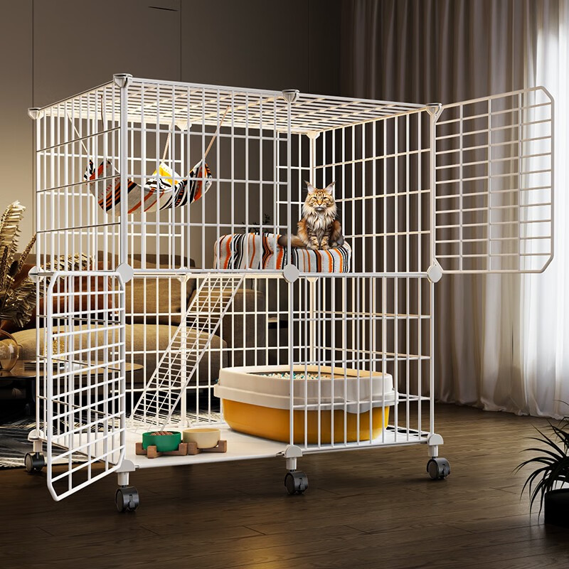 蔻丝猫笼子大号家用室内带厕所区幼猫窝猫咪别墅省空间猫舍屋宠物猫笼 【2层 75_39_76】带滑轮一体 一站式配齐:宠物碗 猫厕套餐