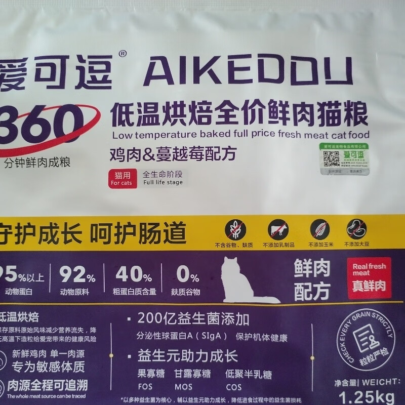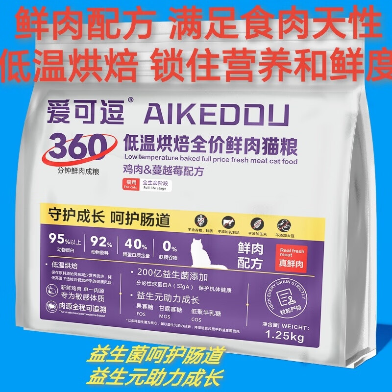 爱可逗益生菌呵护肠道防过敏无谷鲜肉增肥发腮全价高档幼、成猫粮1.25Kg 1.25 全阶段