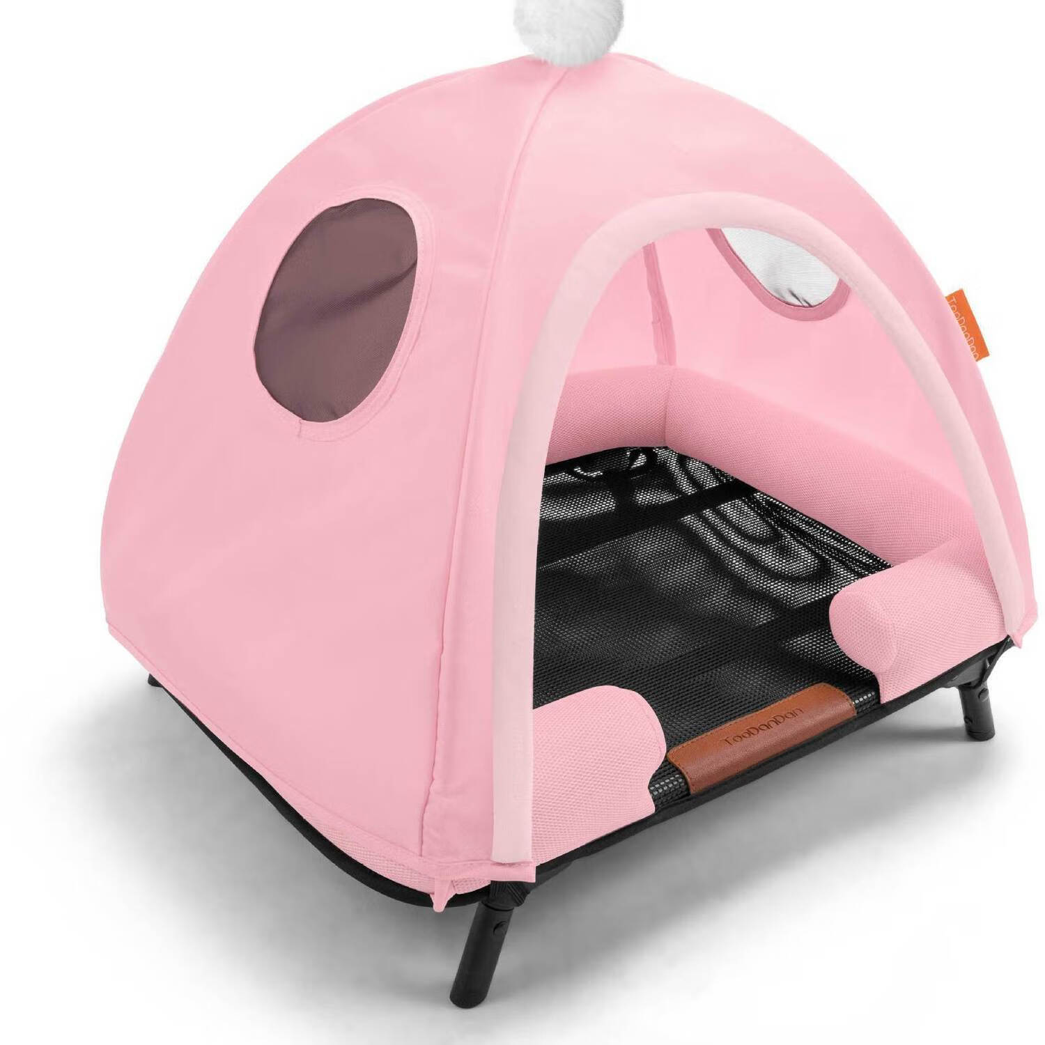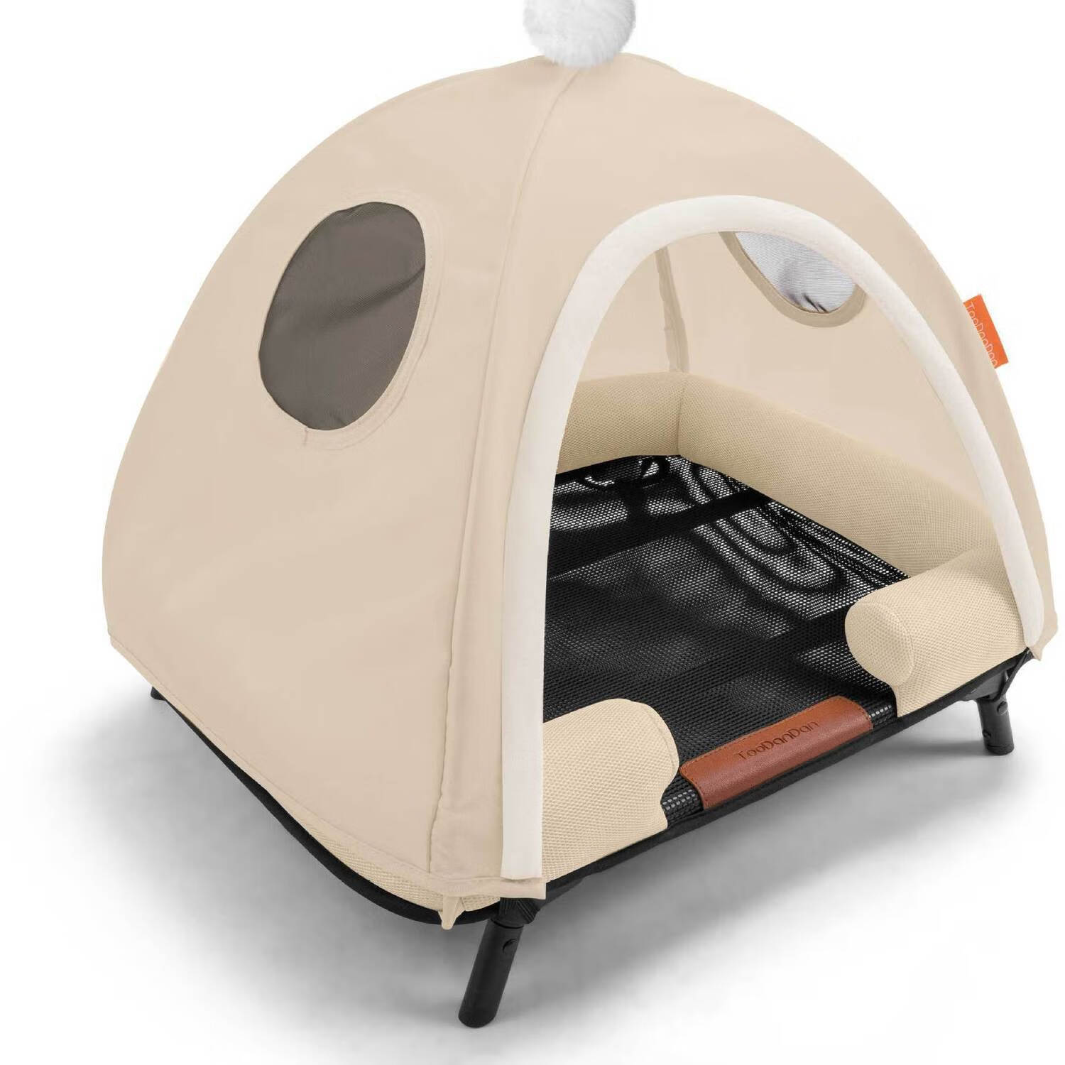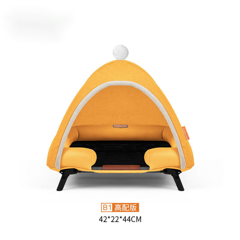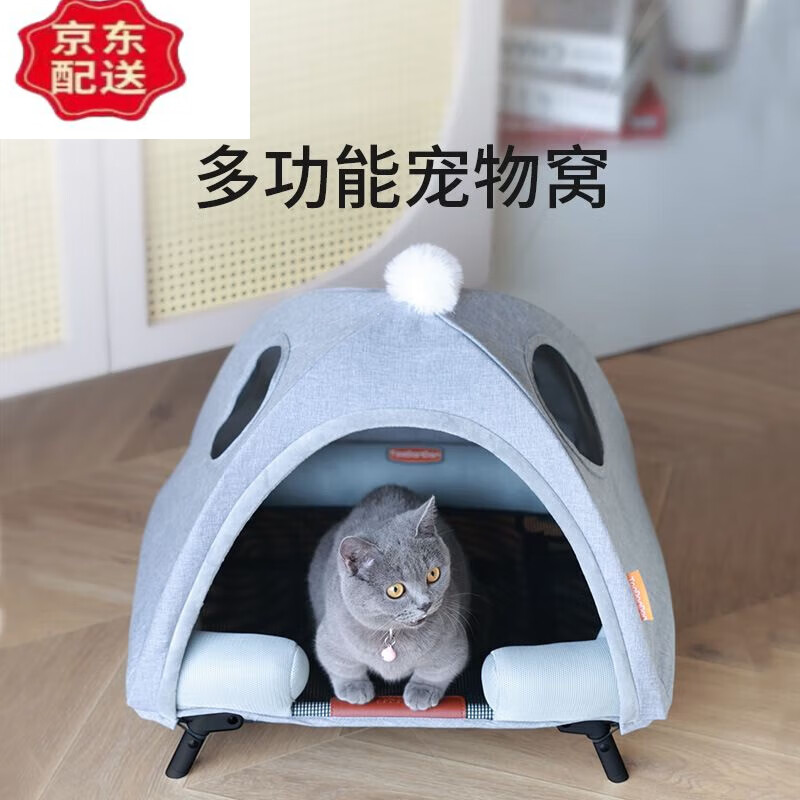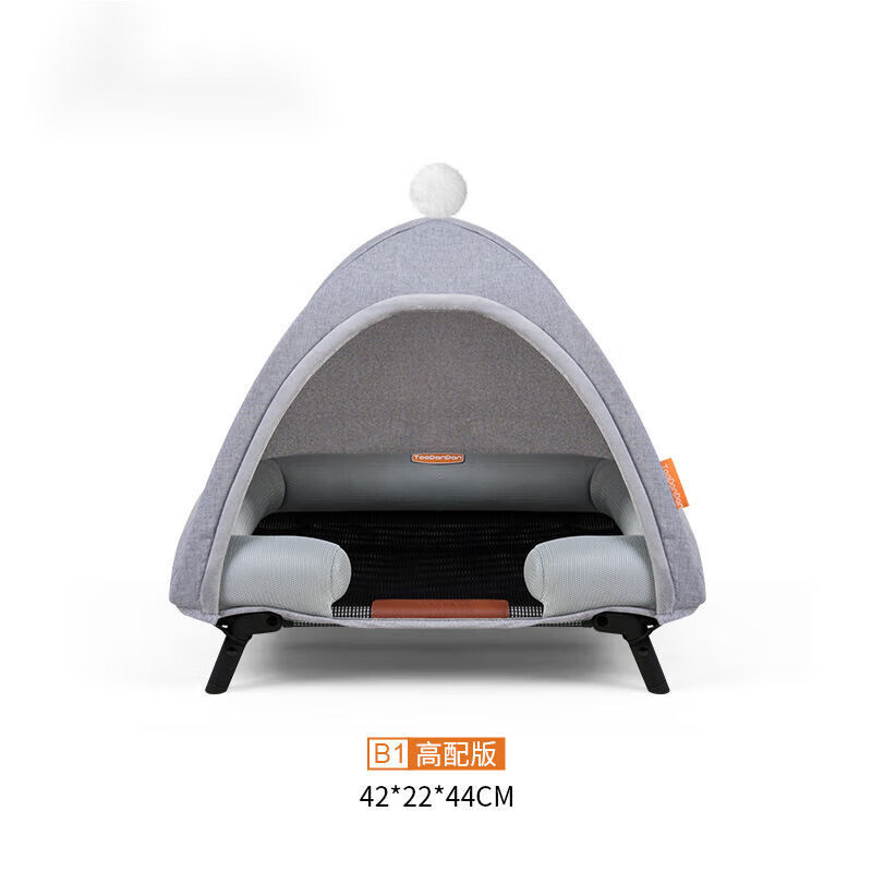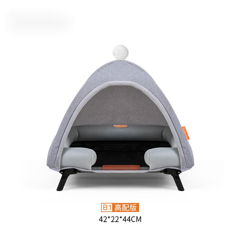 调皮窝狗窝透气凉窝四季通用狗屋蒙古包折叠行军床狗床防潮狗帐篷半封闭 B1 浅灰色 52*42*45cm 多功能宠物行军床
