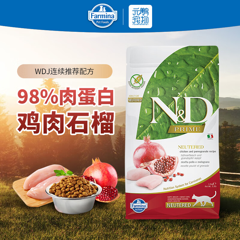 法米娜(farmina)猫粮 意大利进口成猫无谷粮 成猫粮|鸡肉石榴1.5kg