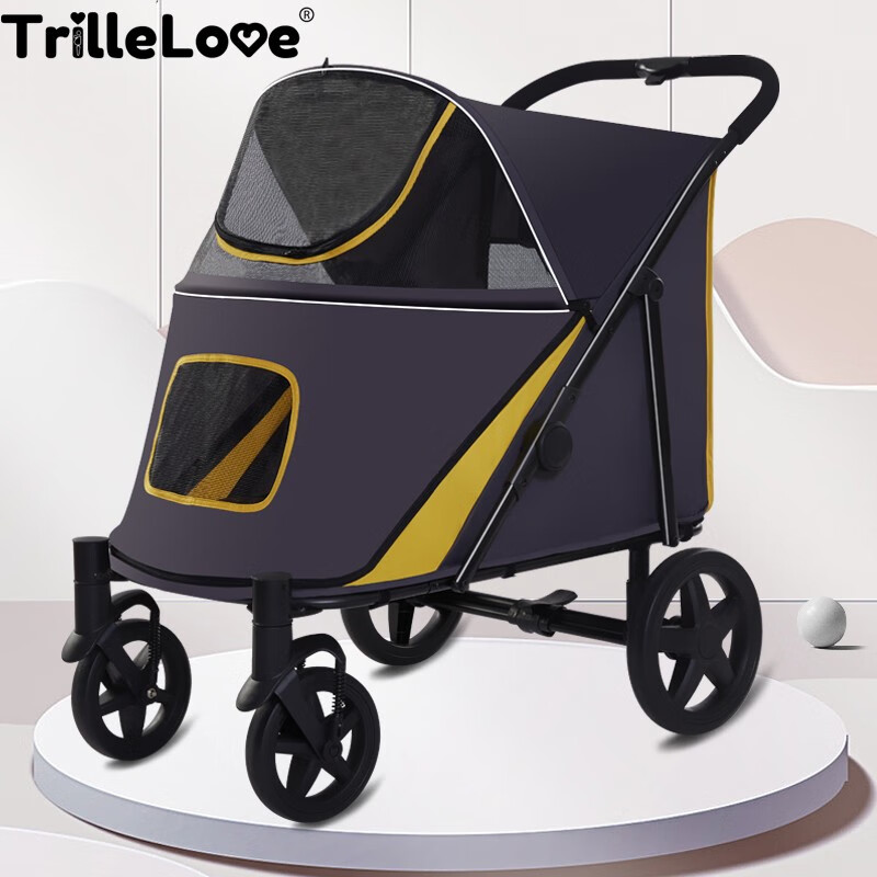 TRILLE LOVE宠物手推车中大型犬狗狗推车猫咪老年残疾代步户外出可折叠遛狗车 黄黑