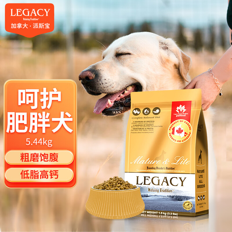 派斯宝Legacy 进口宠物狗粮大中小型幼犬成犬通用 高钙低脂低敏 体重控制犬粮5.44kg