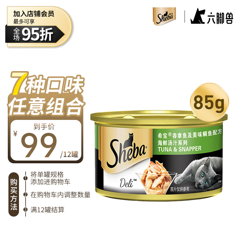 希宝猫罐头 原装泰国进口 宠物猫咪湿粮补水零食 【自选12罐108块】吞拿鱼加鲷鱼【汤汁】85单罐