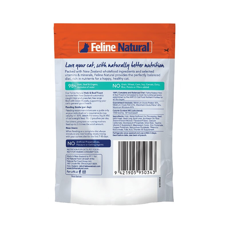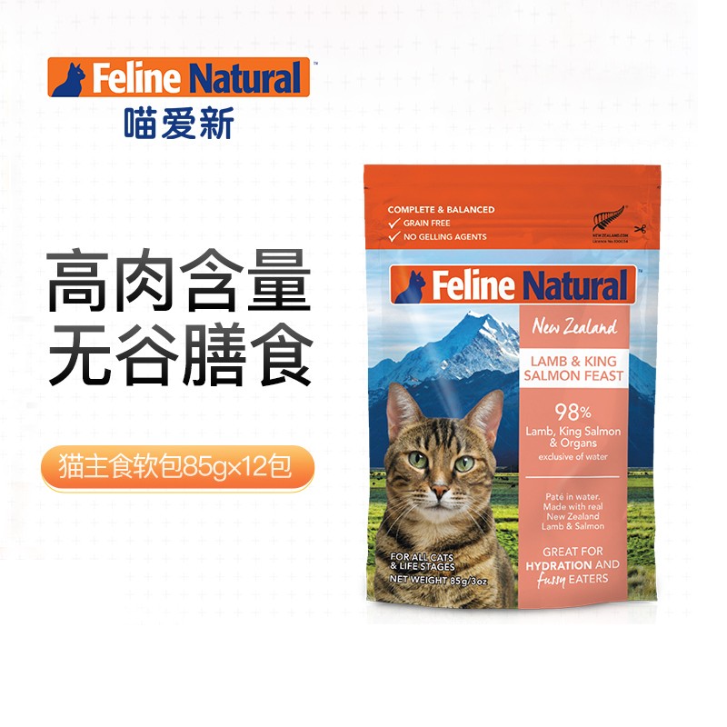 K9 Natural 猫粮 宠物猫零食猫湿粮包85g*12 新西兰原装进口猫咪营养拌饭主食猫罐头 牛肉鳕鱼85g*12