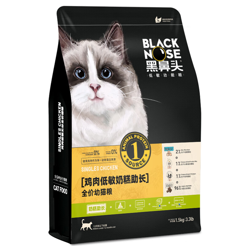 黑鼻头无谷猫粮肠胃奶糕成幼家猫蓝猫布偶银渐层通用型全价全期猫粮 幼猫-奶糕助长1.5kg