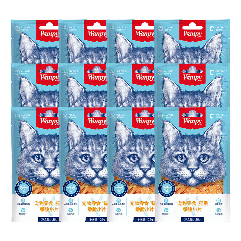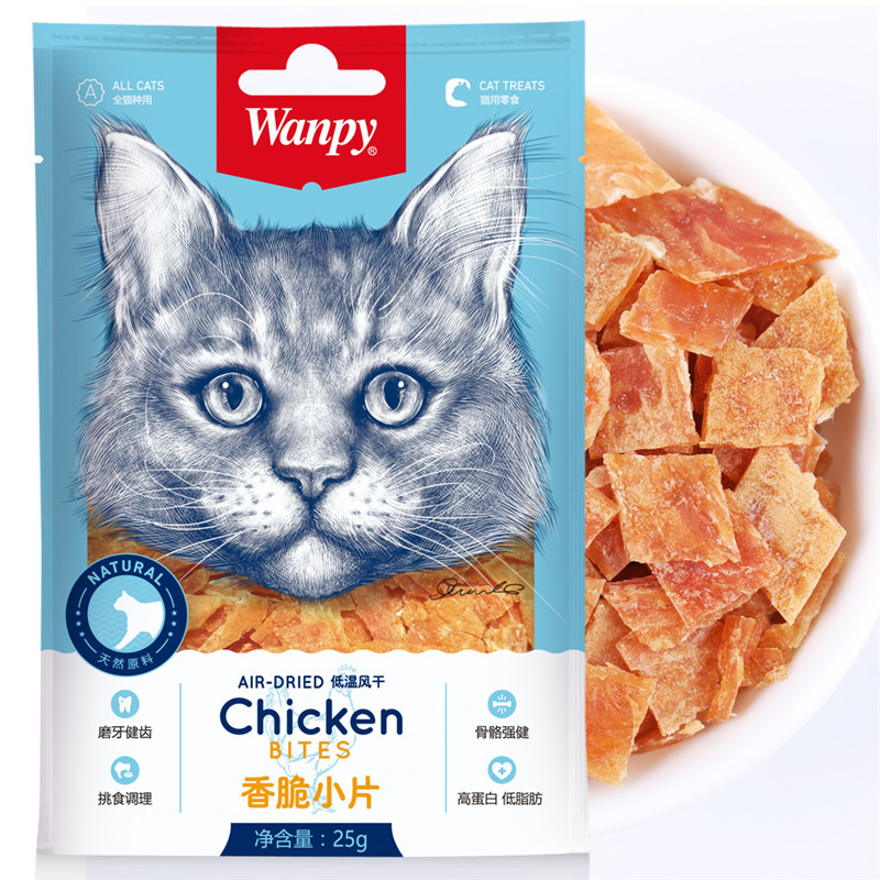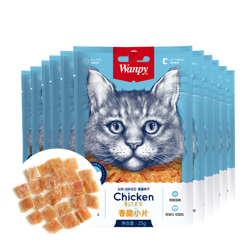 顽皮(Wanpy)猫零食鸡肉干香脆小片300g(25g*12袋)成幼猫宠物猫咪零食