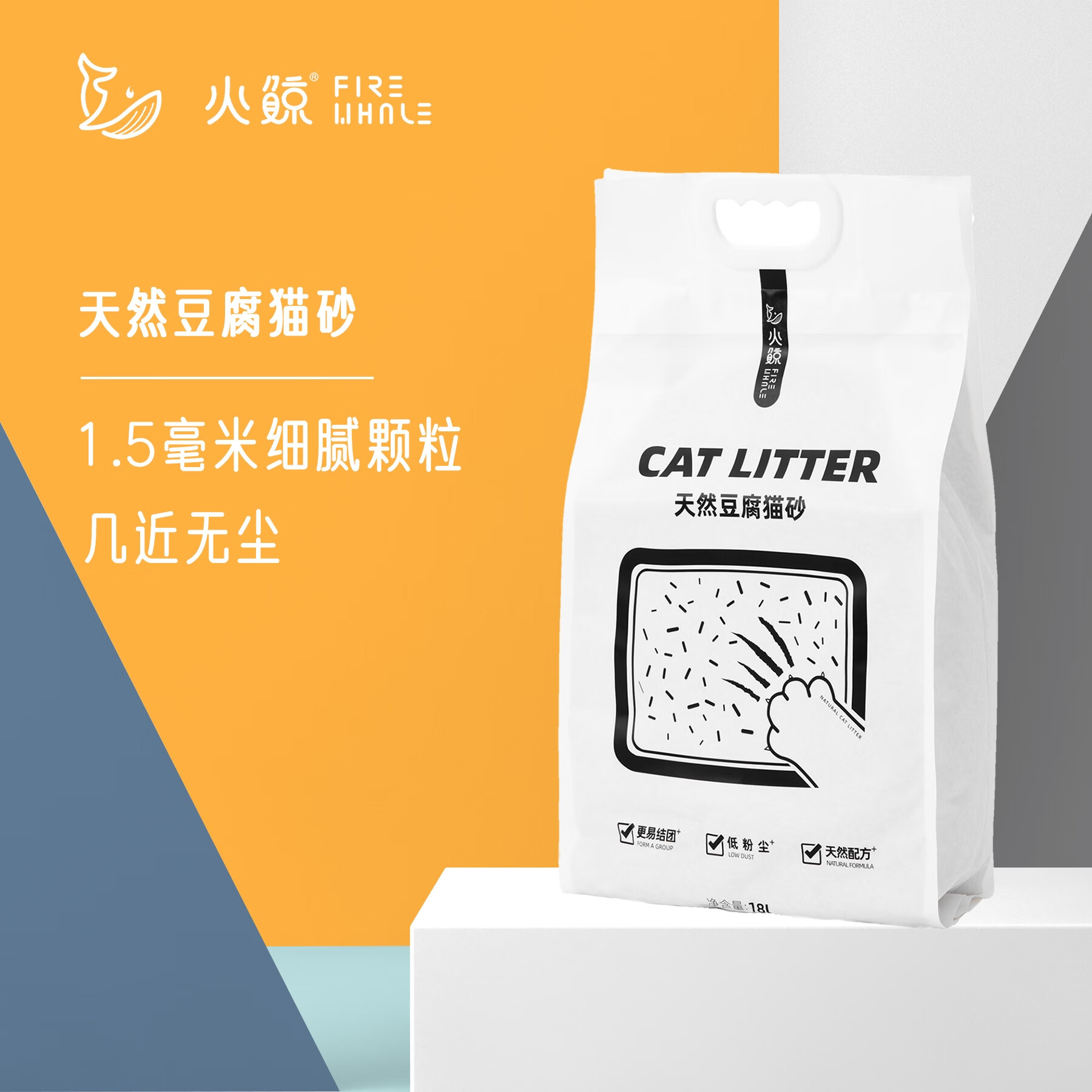 火鲸豆腐猫砂活性炭无尘除臭除尿骚味混合猫砂大量装20KG家庭装 原味18L(6.5kg)
