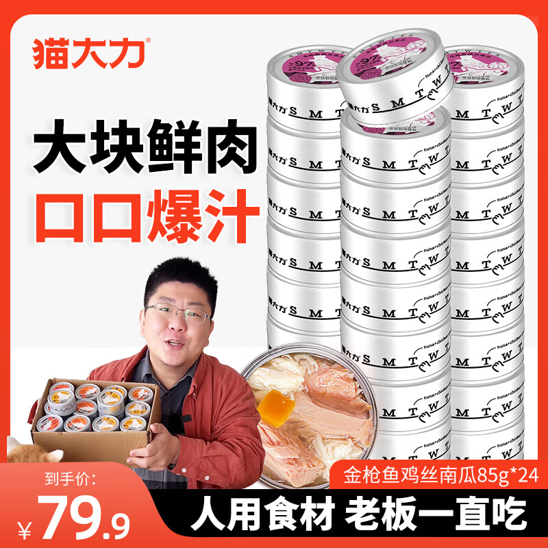 猫大力猫罐头宠物零食猫用浓汤大口肉猫湿粮成幼猫全价通用罐头营养增肥 【金枪鱼鸡丝南瓜85g*24罐】