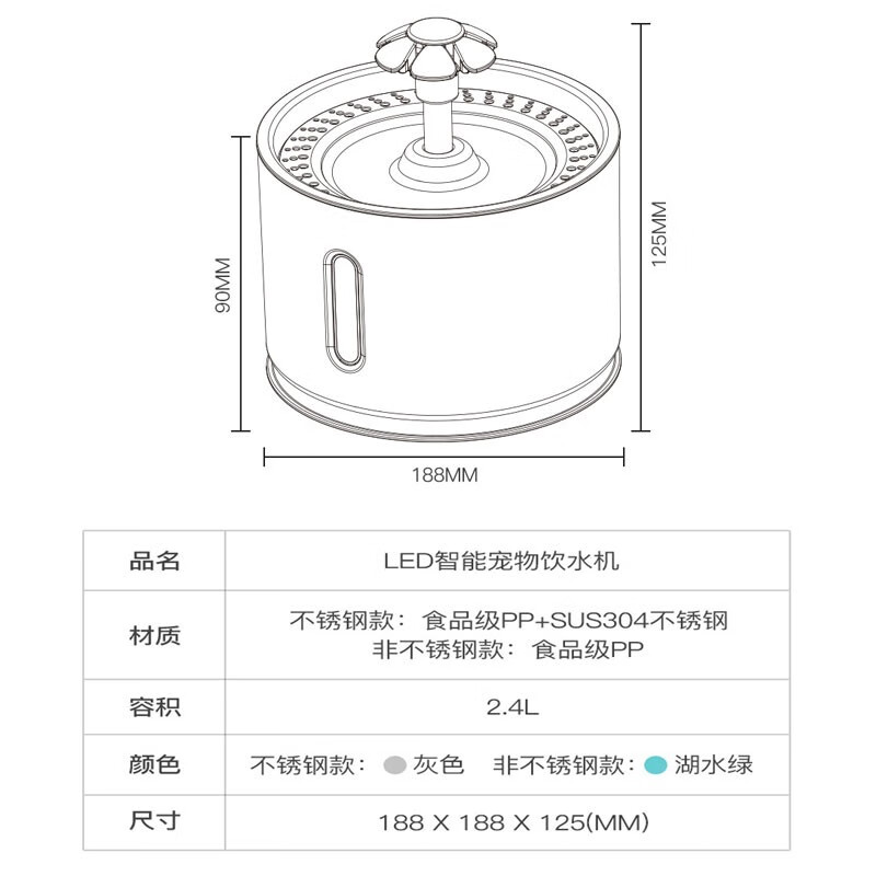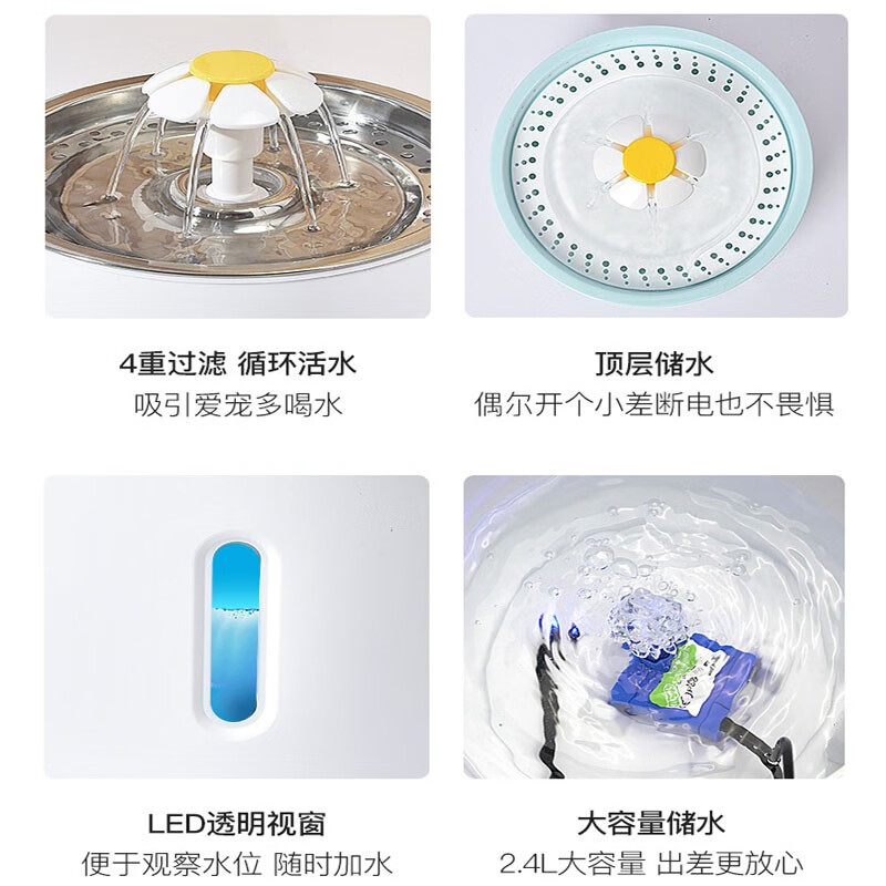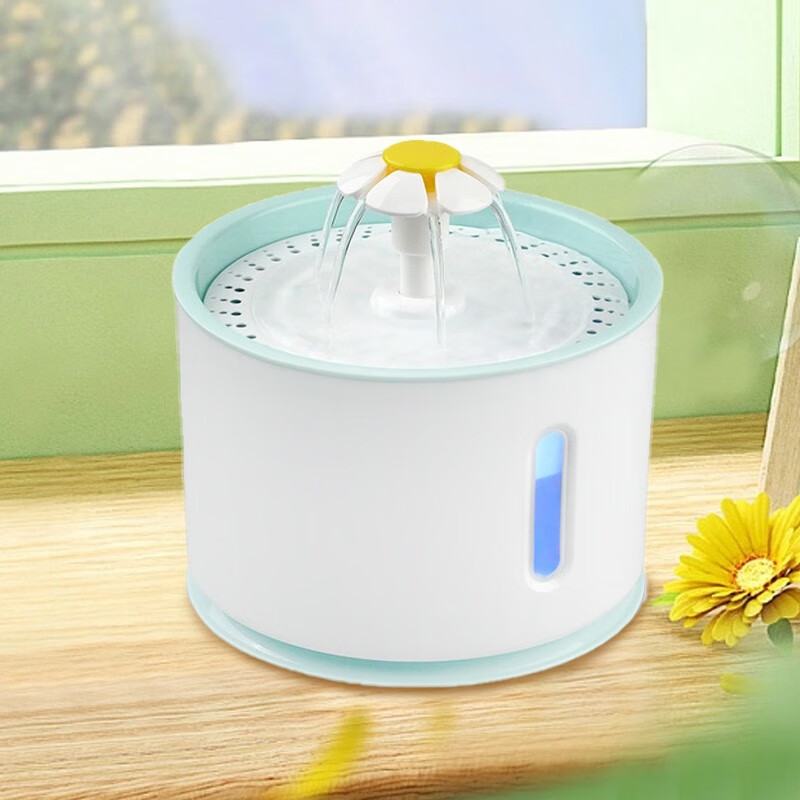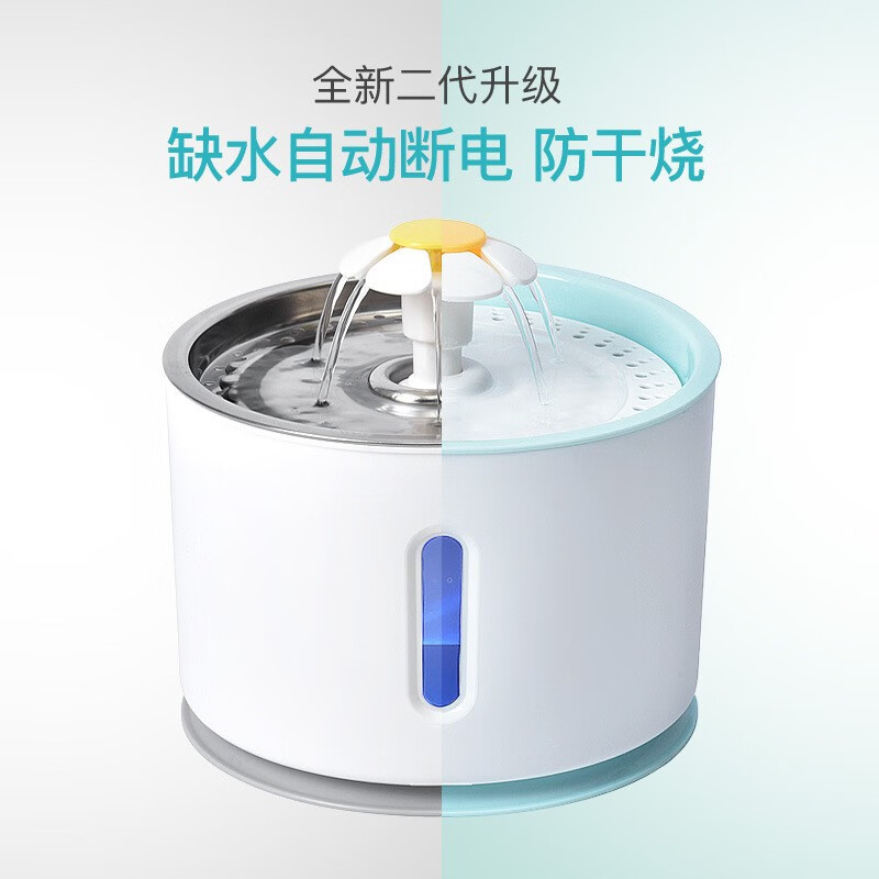 宝贝故事(BABY STORY)猫咪自动饮水机 智能猫咪饮水机自动循环狗喝水器小花宠物喂水器 湖蓝色缺水断电款(塑胶) 2.4 L(188*188*125MM)