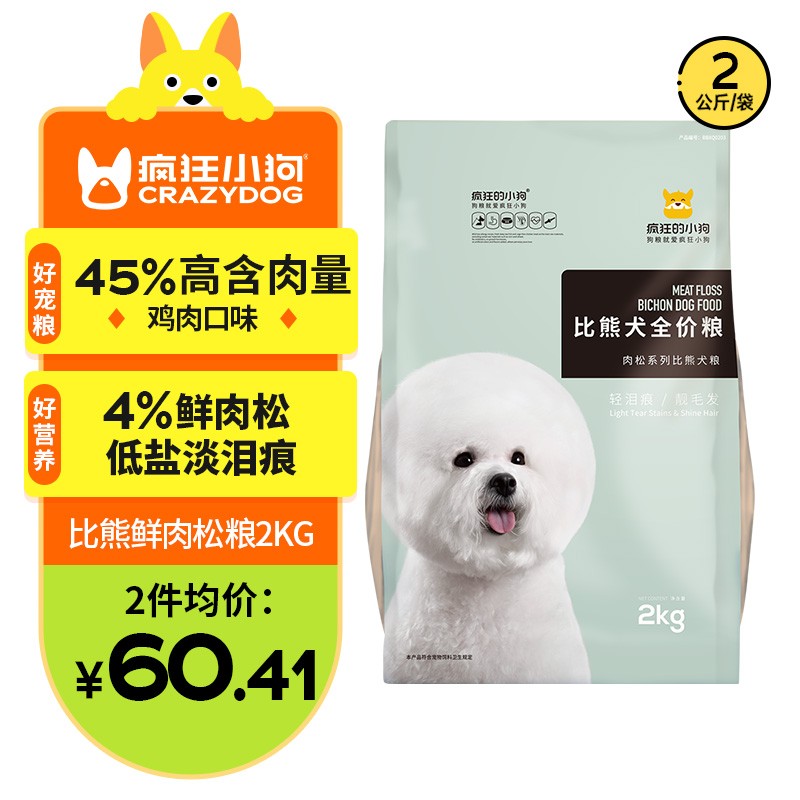 疯狂的小狗比熊专用狗粮肉松小型成犬狗粮幼犬全犬期通用 比熊专用肉松粮 2KG 全阶段