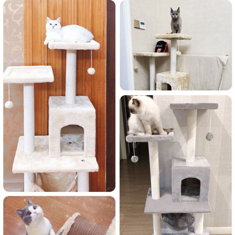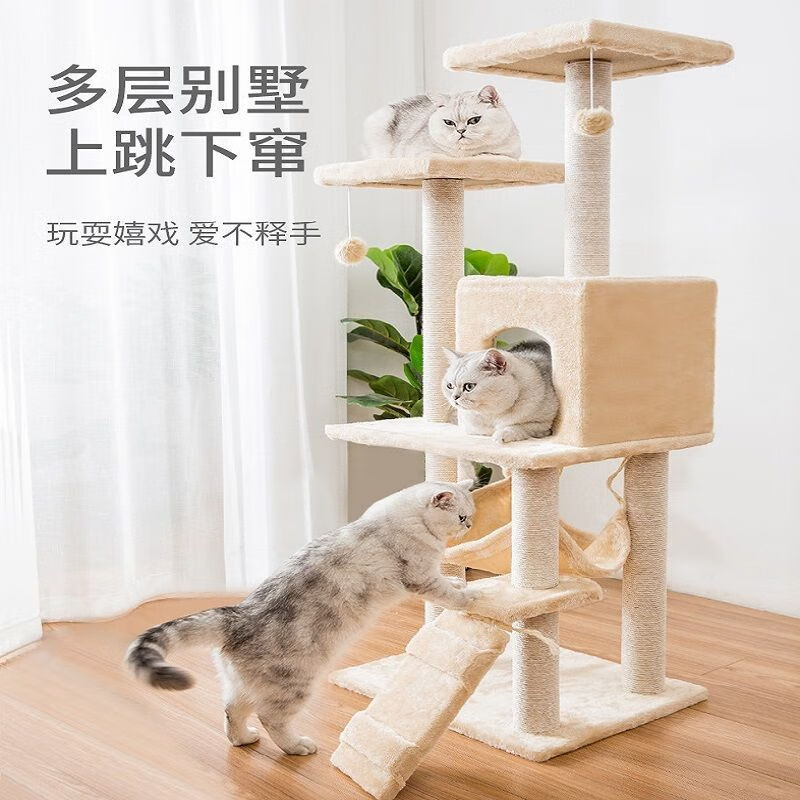 猫咪爬架猫咪架子猫窝猫树一体猫爬架磨爪玩耍睡觉猫跳台猫咪用品 米色绒布柱子()