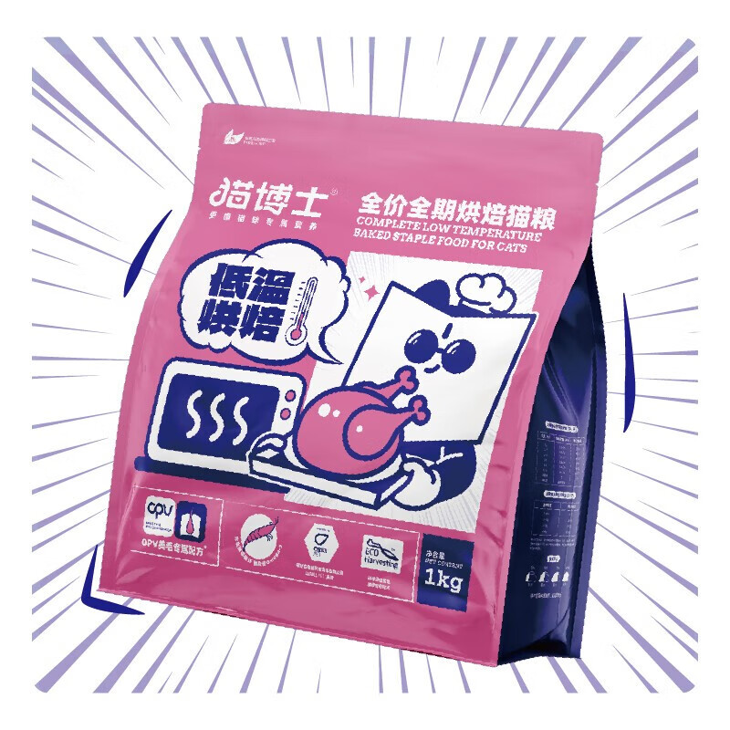 猫博士美毛烘焙猫粮无谷鲜肉成猫幼猫通用粮高蛋白全价全期猫粮 烘焙粮1kg*6