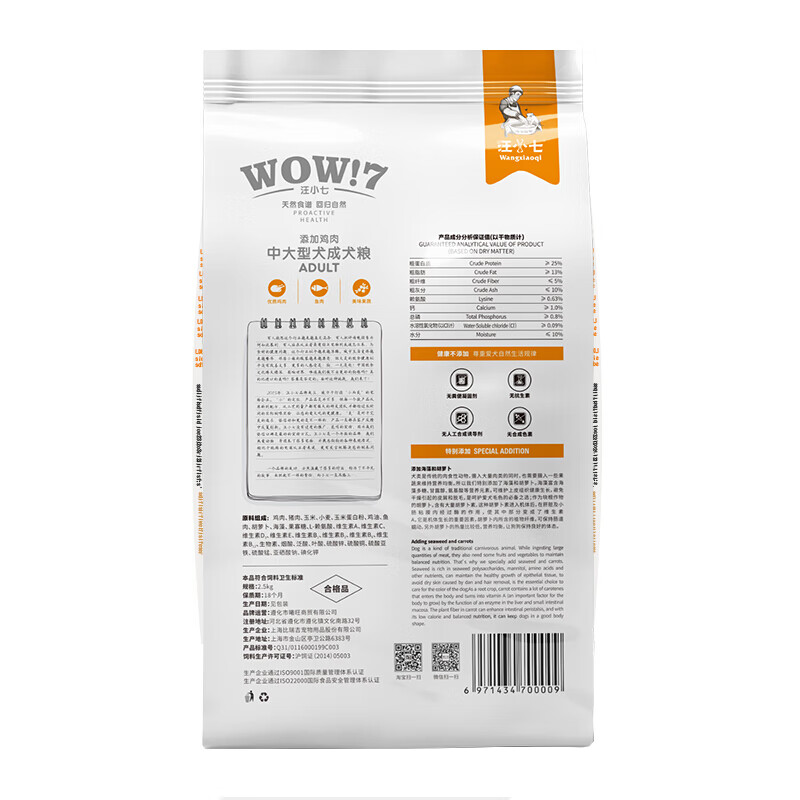 汪小七 狗粮 金毛泰迪比熊拉布拉多雪纳瑞法斗哈士奇柯基中大型成犬粮 4袋装(10kg)