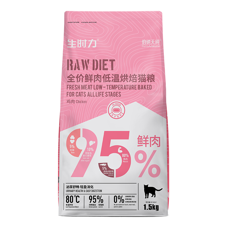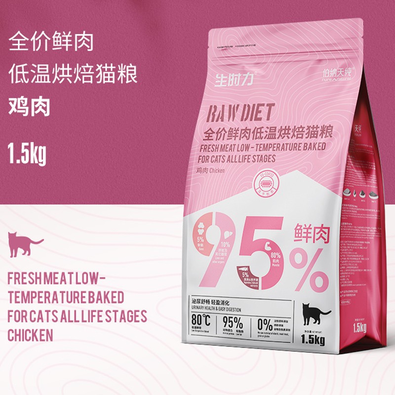 伯纳天纯低温烘焙粮生时力猫粮全价成猫幼猫主食鲜肉高蛋白易吸收 鲜肉烘焙猫粮1.5kg