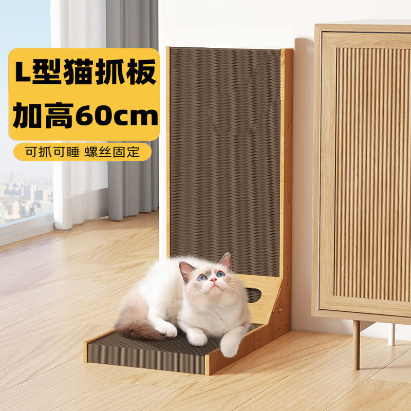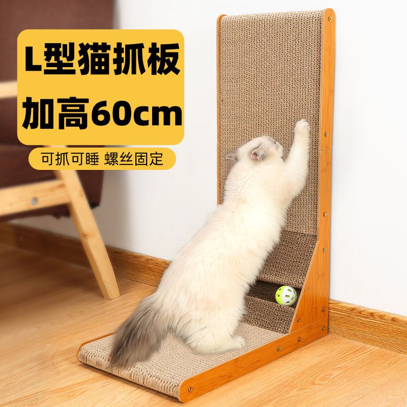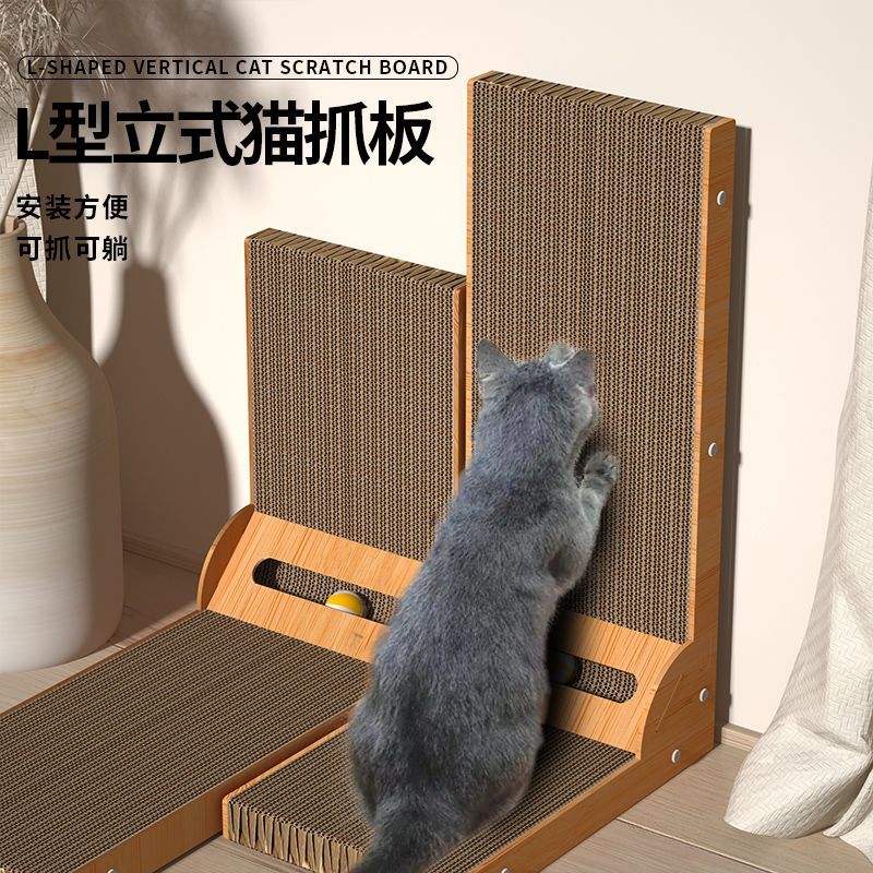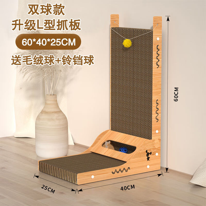 L型猫抓板立式耐磨不掉屑猫窝一体耐抓大号瓦楞纸猫爪板猫咪玩具 升级立式L型抓板【双球款】