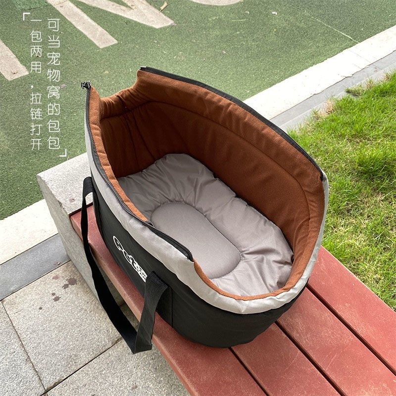 四季猫包外出便携狗狗小型犬猫背包外带单肩斜跨手提出行包宠物包 灰色 L-适合12斤以内宠物
