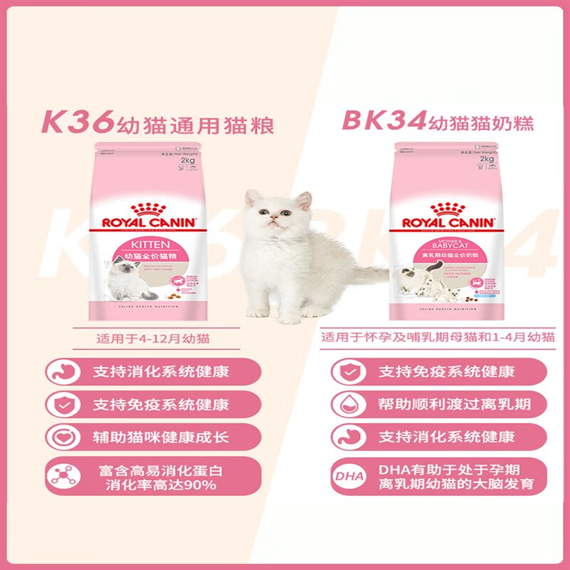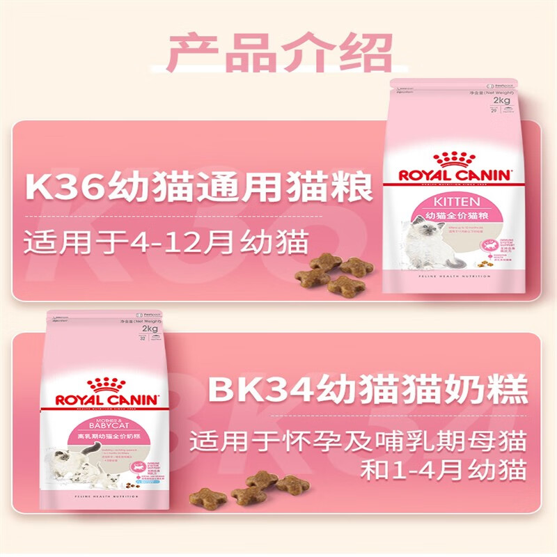 皇家(ROYAL CANIN)猫粮幼猫奶糕k36/bk34官方母孕猫离乳 红色 2kg