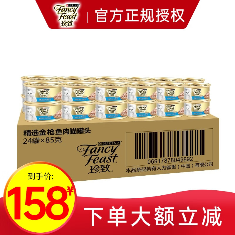 泰国进口 珍致(FancyFeast)猫罐头大块肉补水汤罐猫咪湿粮零食 金枪鱼85g*24罐