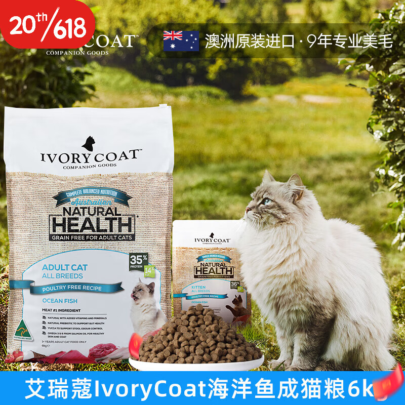 艾瑞蔻(IVORY COAT)猫粮 海洋鱼全价猫主粮 美毛宠物成猫粮澳洲进口猫咪营养食品 海洋鱼成猫粮 6kg
