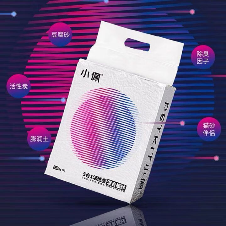 小佩猫砂五合一混合砂活性炭膨润土豆腐砂除臭秒结团不扬粉尘颗粒 单包试用-5合1混合猫砂 7L*1包