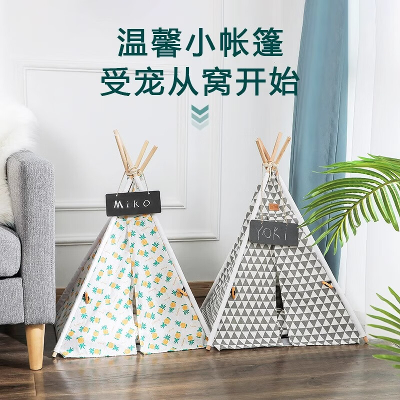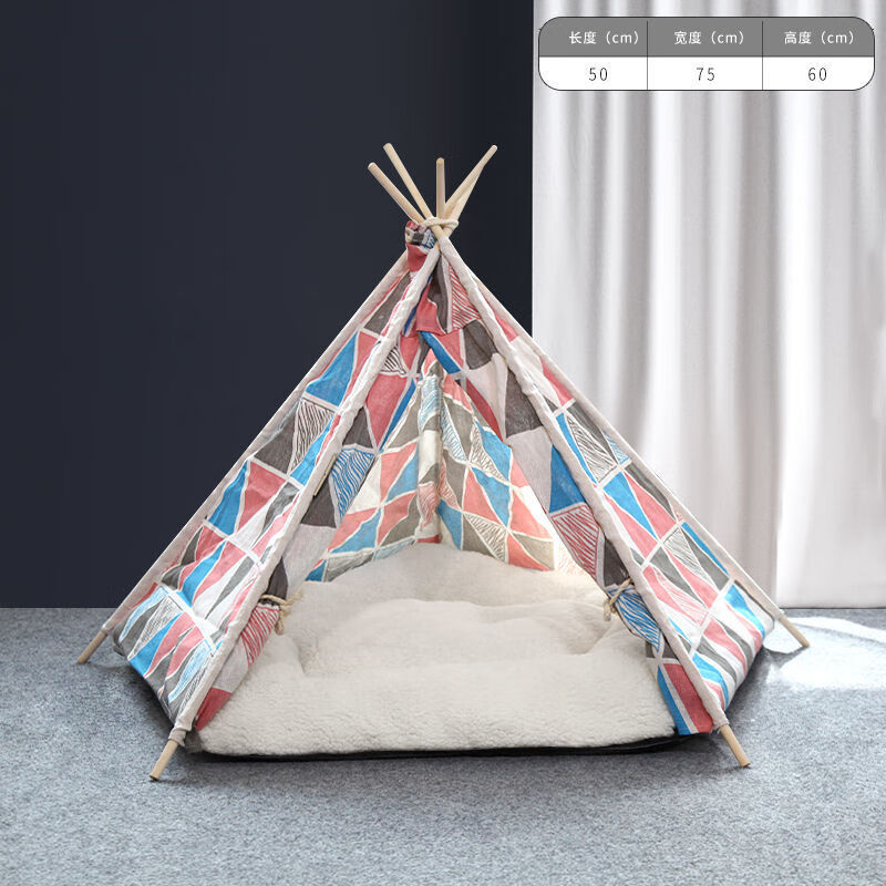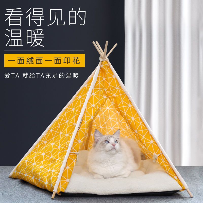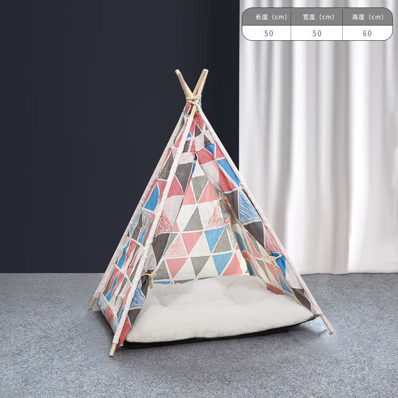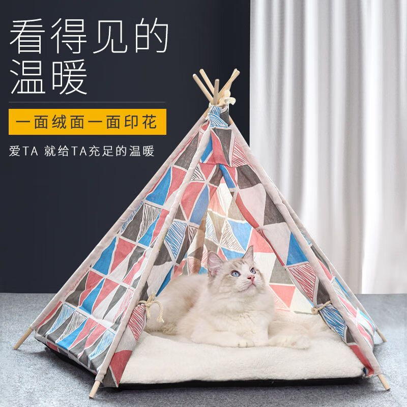 艾窝猫窝猫帐篷冬季温暖四季通用狗窝垫子可拆洗猫窝猫房狗狗宠物帐篷 三角粉色 四角款L【15斤以内宠物】 无加绒款